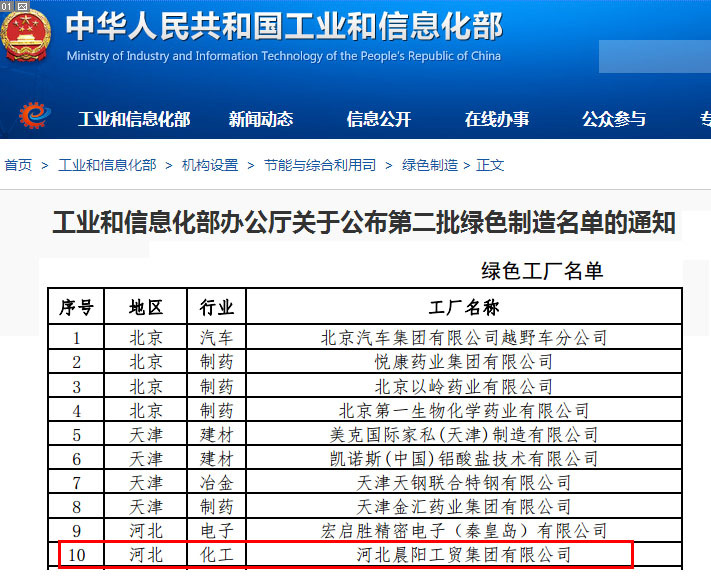 河北晨陽工貿集團入選“國家級綠色工廠”名單