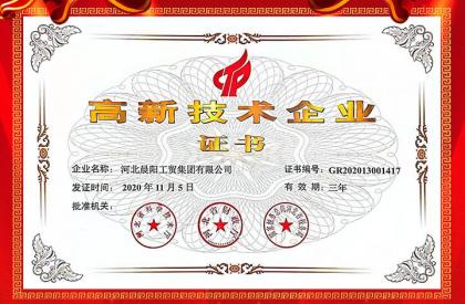 2020年河北晨陽工貿集團榮獲“高新技術企業”認證