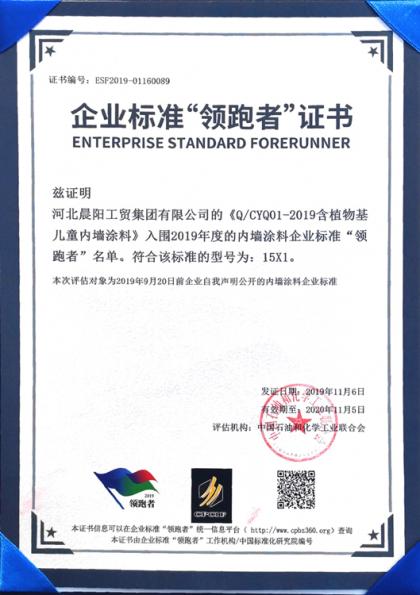 植潤兒童水漆榮獲2019年度企業標準“領跑者”證書