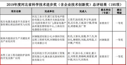 榮獲2019年度河北省科學技術進步獎一等獎